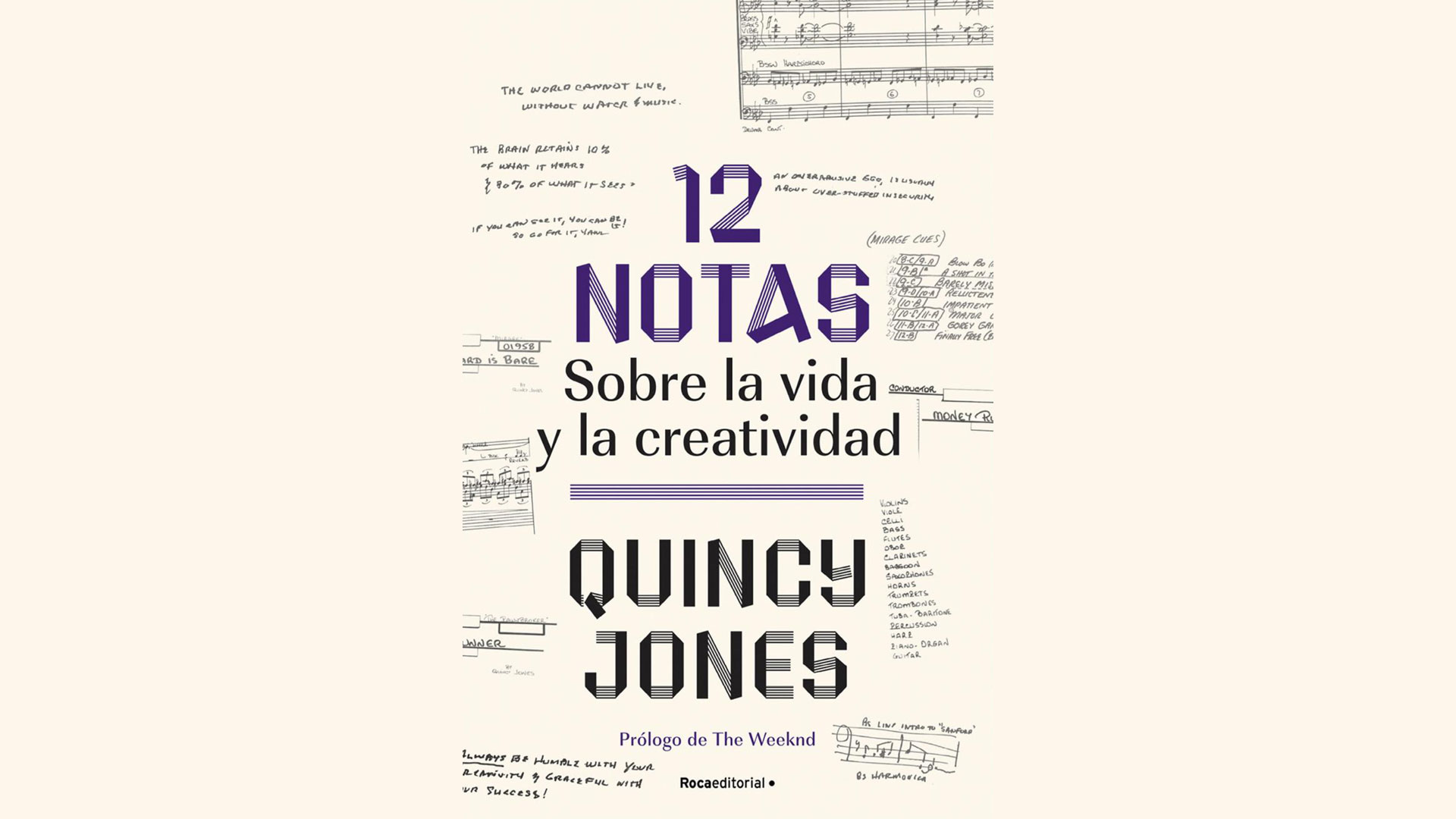 12 notas es una guía de autodesarrollo que nos confirma que la creatividad es una llamada que puede y debe ser respondida sin importar la edad que tengas. A partir de su propia vida y de la de sus muchos colaboradores creativos, pasados y presentes, los lectores aprenderán lecciones, tanto filosóficas, como todo de herramientas para transformar el dolor en poder, así como recordatorios prácticos, como el valor de establecer metas y articular intenciones a través de afirmaciones diarias. Quincy finalmente comparte su propio proceso con los lectores para que comprendan la importancia de dejar que la honestidad, el trabajo duro y las buenas relaciones, y no el ego, impulsen tu carrera.